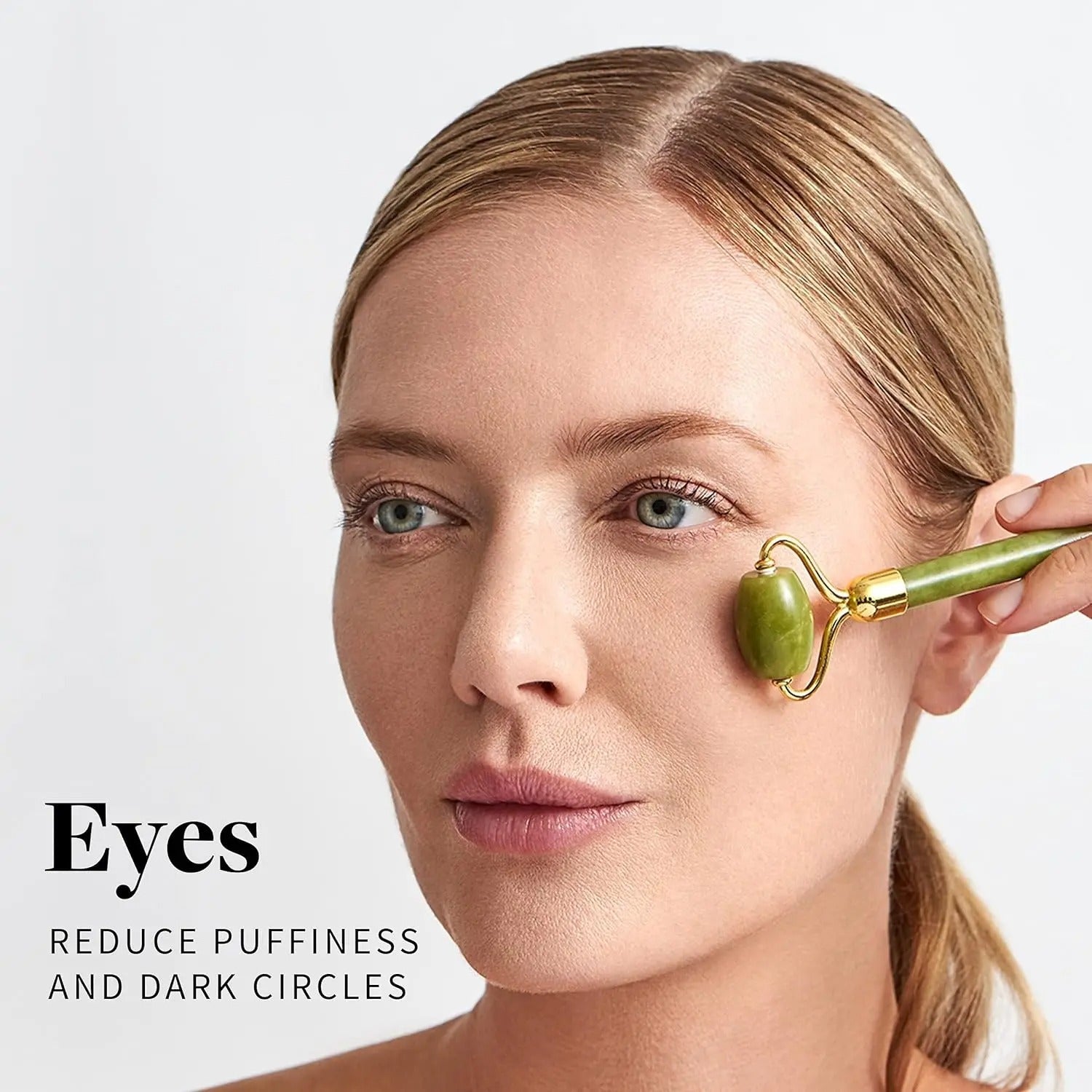 - Jade Roller – Soothes skin, enhances elasticity, and reduces puffiness