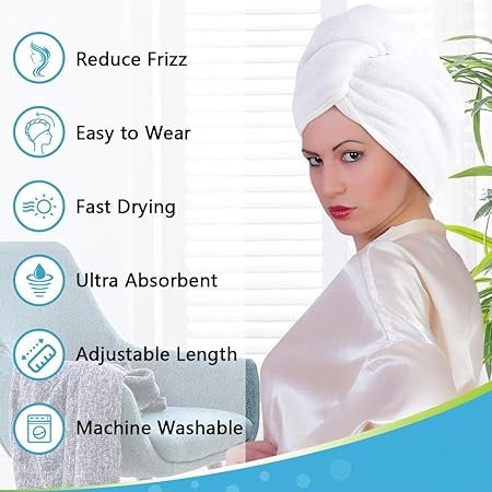 💆♀️ Fast & Gentle Hair Drying – Tired of waiting for your hair to dry after every bath? Our Microfiber Hair Drying Towel is designed to wick away moisture quickly, leaving your hair smooth, healthy, and frizz-free.